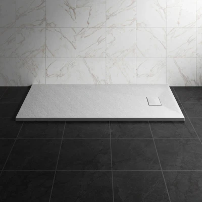 Features: Durable Construction: SMC materials are known for their strength and resilience, making the shower tray highly durable and long-lasting. Elegant Appearance: The stone pattern provides a sophisticated look, adding a touch of luxury to any bathroom setting. Non-Slip Surface: Designed for safety, the textured finish helps prevent slipping, ensuring a safer showering experience. Lightweight Design: Despite its robust make, an SMC shower tray is lightweight, making installation easier and more manageable. Easy to Clean: The smooth, non-porous surface prevents the accumulation of grime and is easy to maintain, enhancing hygiene. Eco-Friendly: SMC materials can be produced using environmentally friendly processes, making it a sustainable choice for conscious consumers. Specification: -Tray Type: Rectangle -Colour: White -Material: SMC -Non-Slip surface -Height: 32mm -Length: 1500mm -Width: 800mm -Waste Hole Size: 90mm -Waste Location: Side of Tray -Drain Cover Size: 20x12cm