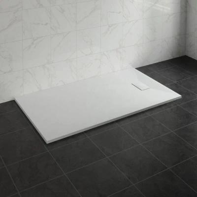 Features: Durable Construction: SMC materials are known for their strength and resilience, making the shower tray highly durable and long-lasting. Elegant Appearance: The stone pattern provides a sophisticated look, adding a touch of luxury to any bathroom setting. Non-Slip Surface: Designed for safety, the textured finish helps prevent slipping, ensuring a safer showering experience. Lightweight Design: Despite its robust make, an SMC shower tray is lightweight, making installation easier and more manageable. Easy to Clean: The smooth, non-porous surface prevents the accumulation of grime and is easy to maintain, enhancing hygiene. Eco-Friendly: SMC materials can be produced using environmentally friendly processes, making it a sustainable choice for conscious consumers. Specification: -Tray Type: Rectangle -Colour: White -Material: SMC -Non-Slip surface -Height: 32mm -Length: 1500mm -Width: 900mm -Waste Hole Size: 90mm -Waste Location: Side of Tray -Drain Cover Size: 20x12cm