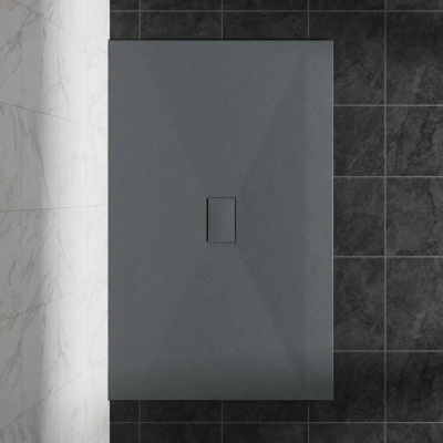 General description NRG 1600 x 1000mm SMC Anthracite Rectangle Slate Effect Bathroom Shower Tray combines durability with elegance. Made from strong SMC materials, this shower tray is designed to withstand daily use while providing a sophisticated stone pattern that enhances the luxury of any bathroom. Its non-slip surface ensures safety during use, making it an ideal choice for families. Technical specifications Tray Type: Rectangle Colour: Anthracite Material: SMC Non-Slip surface Height: 32mm Length: 1600mm Width: 1000mm Waste Hole Size: 90mm Waste Location: Centre of Tray Drain Cover Size: 20x12cm Installation It is recommended to have this shower tray installed by a qualified professional for optimal results. Usage The smooth, non-porous surface of the shower tray makes it easy to clean and maintain, promoting hygiene and preventing grime accumulation. Other information SMC materials can be produced using environmentally friendly processes, making this shower tray a sustainable