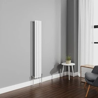 NRG 1600x236mm Gloss White Radiator Vertical Oval Panel Bathroom Designer Single Rad Central Heating