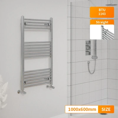 General description Contemporary style, suitable for any kind of interior design. The modern manufacturing finish process gives the radiator a smooth and elegant appearance. Technical specifications Material: Low carbon steel Model: Straight in Chrome Size: 1000x600mm Inlets and outlets: 1/2" Tested to BS & EN442 Certification: Powder coated finish exceeding 200 hours of neutral acid salt spray testing Complies with ISO9001:2008 regulations Complies with UKCA regulations Compatibility and accessories Compatible for use on all UK heating systems (tank fed or combi systems) Valves are not included Other information Tested under high hydraulic pressure to ensure impermeability Manufacturer-leading 15-year warranty applicable exclusively for water leakage claims within the warranty period