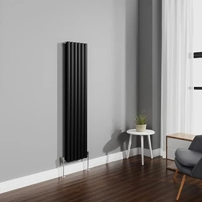 NRG 1600x354mm Black Radiator Vertical Oval Panel Bathroom Designer Double Rad Central Heating