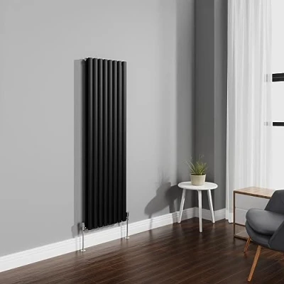 NRG 1600x472mm Black Radiator Vertical Oval Panel Bathroom Designer Double Rad Central Heating