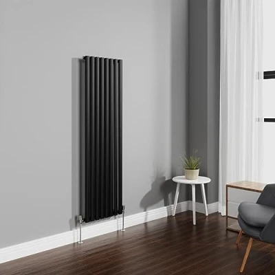 NRG 1600x472mm Black Radiator Vertical Oval Panel Bathroom Designer Single Rad Central Heating