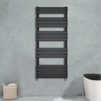 General description Compared with normal heated towel rails, the Flat Panel Heated Towel Rail offers a larger surface area to provide higher heat output. This rail easily fits into all standard central heating systems without complicated installation. Technical specifications Material: Low Carbon Steel Size: 1600x600mm (Height x Width) Water inlet/outlet size: 4-G1/2" Bars: 15 Powder coated finish tested to exceed 200 hours of neutral acid salt spray testing Tested to BS EN442 standards Complies with ISO9001:2008 regulations Compatibility and accessories Compatible for use on all UK heating systems (tank fed or combi systems) No valves included Other information All rails come with a 15-year warranty (applicable exclusively for water leakage claims within the warranty period)