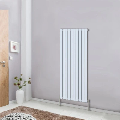 NRG 1600x680 Vertical Column Designer Radiator Gloss White Single Flat Panel
