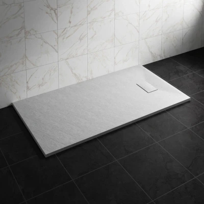 General description Durable Construction: SMC materials are known for their strength and resilience, making the shower tray highly durable and long-lasting. Elegant Appearance: The stone pattern provides a sophisticated look, adding a touch of luxury to any bathroom setting. Non-Slip Surface: Designed for safety, the textured finish helps prevent slipping, ensuring a safer showering experience. Lightweight Design: Despite its robust make, an SMC shower tray is lightweight, making installation easier and more manageable. Easy to Clean: The smooth, non-porous surface prevents the accumulation of grime and is easy to maintain, enhancing hygiene. Eco-Friendly: SMC materials can be produced using environmentally friendly processes, making it a sustainable choice for conscious consumers. Technical specifications Tray Type: Rectangle Colour: White Material: SMC Non-Slip surface Height: 32mm Length: 1600mm Width: 800mm Waste Hole Size: 90mm Waste Location: Side of Tray Drain Cover Size: