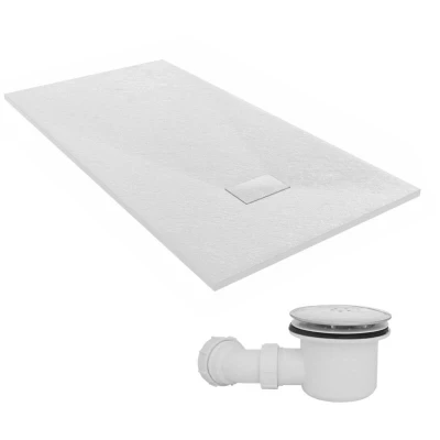 General description Shower Tray Features: The NRG 1700 x 900mm SMC White Rectangle Slate Effect Bathroom Shower Tray is designed for durability and elegance. Made from SMC materials, it offers a robust and long-lasting construction. The stone pattern adds a sophisticated touch, enhancing the luxury of any bathroom. The non-slip surface ensures safety during use, while its lightweight design simplifies installation. Additionally, the smooth, non-porous surface makes cleaning easy and promotes hygiene. This eco-friendly option is produced using sustainable processes, appealing to environmentally conscious consumers. Technical specifications Tray Type: Rectangle Colour: White Material: SMC Non-Slip surface Height: 32mm Length: 1700mm Width: 900mm Waste Hole Size: 90mm Waste Location: Side of Tray Drain Cover Size: 20x10cm Compatibility and accessories Brand: Fluidmaster Designed for trays with a 90mm waste Top access shower trap Installation We suggest you ask a qualified professional to