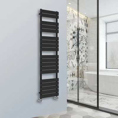 General description Flat Panel Heated Towel Rail Bathroom Rad Radiator in Black, designed for efficient heating and durability. Constructed from low carbon steel, it offers a long lifespan and high heat output, making it an ideal addition to any bathroom. Technical specifications Size: 1800x450mm Colour: Black Inlets and outlets: 1/2' Tested to BS EN442 standards Complies with ISO9001:2008 regulations Compatibility and accessories Compatible with all UK heating systems (tank fed or combi systems) Other information Tested under high hydraulic pressure to ensure impermeability Powder coated finish exceeds 200 hours of neutral acid salt spray testing Manufacturer-leading 15-year warranty applicable exclusively for water leakage claims within the warranty period