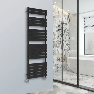 General description Flat Panel Heated Towel Rail Bathroom Rad Radiator in Black, designed for efficient heating with a low carbon steel construction that ensures a long lifespan and high heat output. Technical specifications Size: 1800 x 600 mm Colour: Black Inlets and outlets: 1/2' Compatibility and accessories Compatible with all UK heating systems (tank fed or combi systems) Other information Tested under high hydraulic pressure to ensure impermeability Tested to BS EN442 standards and complies with ISO9001:2008 regulations Powder coated finish exceeds 200 hours of neutral acid salt spray testing Manufacturer-leading 15-year warranty applicable exclusively for water leakage claims within the warranty period