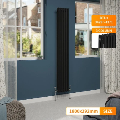 General description Our NRG Traditional Vintage Cast Iron Style Radiator offers a heating solution that combines a classic design with modern functionality at a competitive price. Specially tested, this radiator helps you maximize your available space while easily integrating into your central heating system without complicated installation. Technical specifications Material: 1.5mm Cast Iron style SPCC Steel Size: 1800 x 292 mm Panel: Triple Column Water inlet/outlet size: 1/2" Finish: Black High heat output Tested to BS EN442 standards Other information Brackets and fixings included (valves not included) 15-year guarantee