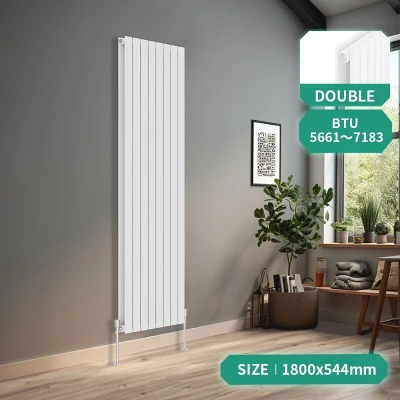 General description Our Designer Radiator offers a contemporary heating solution that combines style and functionality at a competitive price. Designed to seamlessly integrate into your central heating system, it operates like a standard household radiator, ensuring a straightforward installation process. Technical specifications Material: 1.5mm premium mild steel Model: Double Flat Panel in Gloss White Size: 1800x544mm (H x W) Bars: 8 Water inlet/outlet size: 1/2" Compatibility and accessories Compatible with all UK heating systems (tank fed or combi systems) No valves included Other information Tested under high hydraulic pressure to ensure impermeability Triple layered finish exceeds 200 hours of neutral acid salt spray testing Tested to BS & EN442 Complies with ISO9001:2008 regulations All radiators come with a 15-year guarantee