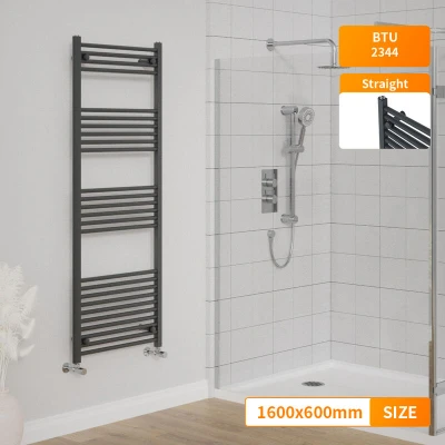 General description Contemporary style, fits any kind of interior design. The modern manufactured finish process gives the radiator a smooth and elegant appearance. Technical specifications Material: low carbon steel Model: Straight in Anthracite Size: 1600x600mm Inlets and outlets: 1/2" Tested to BS & EN442 Certification: Powder coated finish to exceed 200 hours of neutral acid salt spray testing Complies with ISO9001:2008 regulations Complies with UKCA regulations Compatibility and accessories Compatible for use on all UK heating systems (tank fed or combi systems) Valves are not included Installation Tested under high hydraulic pressure to ensure impermeability Usage Can be used on all UK heating systems (tank fed or combi systems) Other information All radiators come with a manufacturer-leading 15-year warranty (applicable exclusively for water leakage claims within the warranty period)