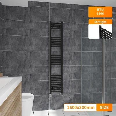 General description Contemporary style, fits any kind of interior design. The modern manufactured finish process gives the radiator a smooth and elegant appearance. Technical specifications Material: Low carbon steel Model: Straight in Black Size: 1600x300mm Inlets and outlets: 1/2" Certification: Powder coated finish exceeding 200 hours of neutral acid salt spray testing Tested to BS & EN442 Complies with ISO9001:2008 regulations Complies with UKCA regulations Compatibility and accessories Compatible for use on all UK heating systems (tank fed or combi systems) Valves are not included Other information Tested under high hydraulic pressure to ensure impermeability Manufacturer-leading 15-year warranty applicable exclusively for water leakage claims within the warranty period
