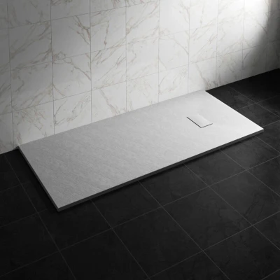 General description NRG 1800 x 800mm SMC White Rectangle Slate Effect Bathroom Shower Tray features a durable construction made from SMC materials, known for their strength and resilience. The elegant stone pattern adds a sophisticated look, enhancing the luxury of any bathroom setting. Designed with safety in mind, the non-slip surface helps prevent slipping, ensuring a safer showering experience. Despite its robust design, the shower tray is lightweight, making installation easier and more manageable. The smooth, non-porous surface is easy to clean and maintain, promoting hygiene. Additionally, SMC materials can be produced using environmentally friendly processes, making this shower tray a sustainable choice for eco-conscious consumers. Technical specifications Tray Type: Rectangle Colour: White Material: SMC Non-Slip surface Height: 32mm Length: 1800mm Width: 800mm Waste Hole Size: 90mm Waste Location: Side of Tray Drain Cover Size: 20x12cm Installation It is recommended to have a