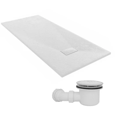 General description The NRG 1800 x 800mm SMC White Rectangle Slate Effect Bathroom Shower Tray combines durability with elegance, featuring a sophisticated stone pattern that enhances any bathroom decor. Its non-slip surface ensures safety while showering, and the lightweight design facilitates easy installation. Technical specifications Tray Type: Rectangle Colour: White Material: SMC Non-Slip Surface: Yes Height: 32mm Length: 1800mm Width: 800mm Waste Hole Size: 90mm Waste Location: Side of Tray Drain Cover Size: 20x10cm Compatibility and accessories Brand: Fluidmaster Designed for trays with a 90mm waste Installation It is recommended to have a qualified professional install this item. Usage Easy to clean due to its smooth, non-porous surface that prevents grime accumulation. Eco-friendly production processes make it a sustainable choice. Other information High-quality chrome finish on the waste trap. Top access shower trap with a flow rate of up to 24 l/m. Quick release inner unit