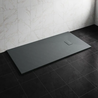 General description NRG 1800 x 900mm SMC Anthracite Rectangle Slate Effect Bathroom Shower Tray combines durability with elegance. Made from strong SMC materials, this shower tray is designed to withstand daily use while providing a sophisticated stone pattern that enhances the luxury of any bathroom. Its non-slip surface ensures safety during use, making it an ideal choice for families. Technical specifications Tray Type: Rectangle Colour: Anthracite Material: SMC Non-Slip surface Height: 32mm Length: 1800mm Width: 900mm Waste Hole Size: 90mm Waste Location: Side of Tray Drain Cover Size: 20x12cm Installation It is recommended to have this shower tray installed by a qualified professional for optimal results. Usage The shower tray is designed for easy cleaning and maintenance, thanks to its smooth, non-porous surface that prevents grime accumulation. Other information SMC materials can be produced using environmentally friendly processes, making this shower tray a sustainable choice