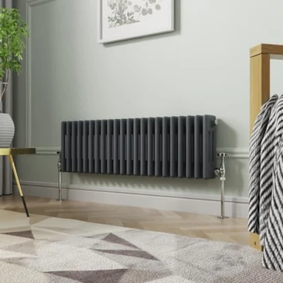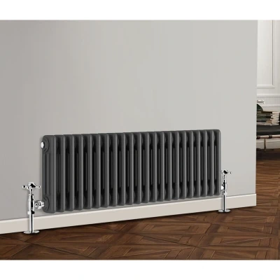 General description Our NRG Traditional Cast Iron Style Radiator offers a heating solution that combines a classic design with modern efficiency at a competitive price. Specially tested, this radiator maximizes your available space while seamlessly integrating into your central heating system without complicated installation. Technical specifications Material: 1.5mm Cast Iron style SPCC Steel Size: 300 x 1010 mm Panel: Triple Column Water inlet/outlet size: 1/2" Finish: Durable Anthracite High heat output Tested to BS EN442 standards Other information Brackets and fixings included (valves not included) 15-year guarantee