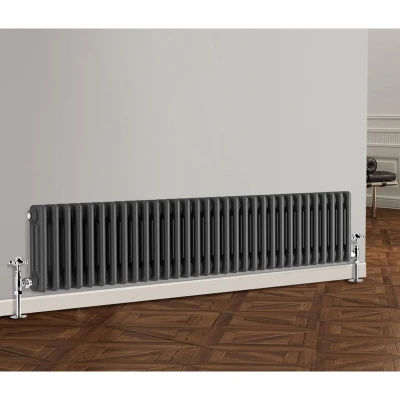 General description Our NRG Traditional Cast Iron Style Radiator offers a heating solution that combines a classic design with modern efficiency at a competitive price. Specially tested, this radiator helps you maximize your available space while easily integrating into your central heating system without complicated installation. Technical specifications Material: 1.5mm Cast Iron style SPCC Steel Size: 300 x 1460 mm Panel: Triple Column Water inlet/outlet size: 1/2" Finish: Durable Anthracite High heat output Tested to BS EN442 standards Other information Brackets and fixings included (valves not included) 15-year guarantee