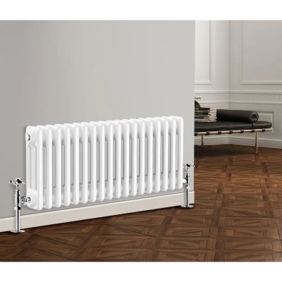 General description Our Traditional Radiator offers a heating solution with a classic design at a competitive price. It is specially tested to maximize your available space and fits seamlessly into your central heating system like a standard household radiator, ensuring a straightforward installation. Technical specifications Material: 1.5mm Cast Iron style SPCC Steel Size: 300 x 830 mm Panel: Triple Column Water inlet/outlet size: 1/2" Finish: White High heat output Tested to BS EN442 standards Other information Brackets and fixings included (valves not included) 15-year guarantee