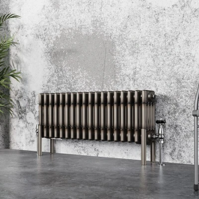 General description High quality traditional cast iron style radiator made from cast iron style steel. This 4 column radiator features a robust design and is fully safety tested, ensuring reliable performance in your central heating system. Technical specifications Dimensions: 300x830mm Inlets and outlets: 1/2" Finish: Triple layered Compatibility and accessories Compatible with all UK water heating systems Brackets and fixings included Valves and floor legs (radiator feet) not included, but available for separate purchase Installation It is recommended to use radiator legs for these 4 column radiators due to their weight Other information Comes with a 15 years warranty Note: Additional charges may apply for delivery to remote areas
