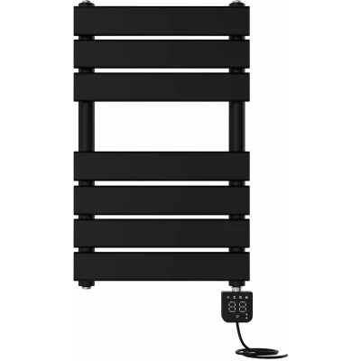 NRG 400W Prefilled Electric Heated Towel Rail Radiator Flat Panel Black Thermostatic Bathroom Warmer Square Touch Screen Display 650x400mm