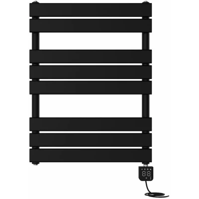 NRG 400W Prefilled Electric Heated Towel Rail Radiator Flat Panel Black Thermostatic Bathroom Warmer Square Touch Screen Display 800x600mm