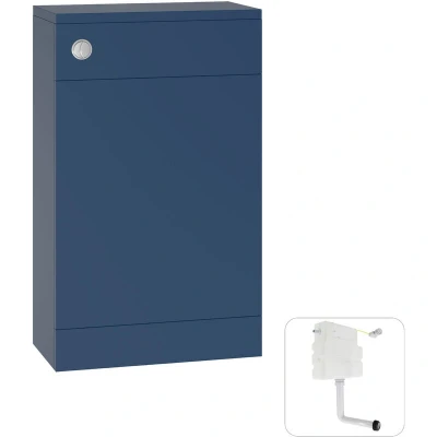 General description Pre-assembled 500mm Toilet Unit with a concealed cistern, featuring a contemporary rectangular design in a stylish Matt Navy Blue finish. This floor-mounted unit is designed for easy installation by simply placing the basin on the cabinet and sealing the edge. Technical specifications Height: 810mm Width: 500mm Depth: 245mm Concealed cistern with dual flush: 6 litre full flush and 3 litre half flush Side entry water entry (can be fitted on the left or right) Internal overflow Flush pipe included (90 degree) Chrome push button All internal cistern fittings supplied Compatibility and accessories Suitable for use with back to wall toilets Other information Please note that the actual colour of the item may be slightly different than what is shown in the photos.