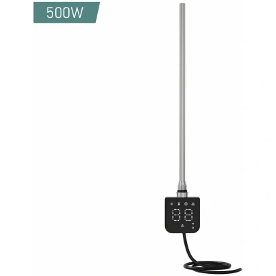 NRG 500W Thermostatic Smart Dual Fuel Towel Rail Radiator Electric Heating Element Square Touch Screen LCD Display Black