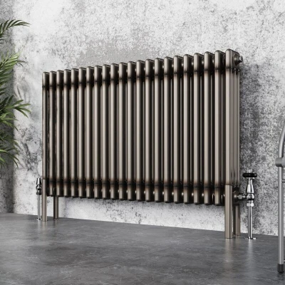 General description High quality triple layered finish radiator made from cast iron style steel. This traditional 3 column radiator is designed for central heating systems and is fully safety tested. Technical specifications Dimensions: 600x1012mm Inlets and outlets: 1/2" Weight: Heavy (specific weight not provided) Compatibility and accessories Compatible with all UK water heating systems Brackets and fixings included Valves and floor legs (radiator feet) not included, but available separately Other information 15 years warranty Recommended to use radiator legs for stability due to weight