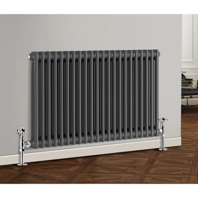 General description Our Traditional Radiator Cast Iron Style Radiator offers a heating solution that combines a classic design with modern efficiency at a competitive price. Specially tested, it maximizes your available space and fits seamlessly into your central heating system without complicated installation. Technical specifications Material: 1.5mm Premium Mild Steel Size: 600 x 1010 mm Panel: Double Column Water inlet/outlet size: 1/2" Finish: Durable Anthracite High heat output Tested to BS EN442 standards Other information Brackets and fixings included (valves not included) 15-year guarantee
