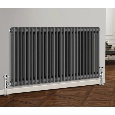 General description Our NRG Traditional Cast Iron Style Radiator offers a heating solution that combines a classic design with modern efficiency at a competitive price. Specially tested, this radiator maximizes your available space while seamlessly integrating into your central heating system without complicated installation. Technical specifications Material: 1.5mm Cast Iron style SPCC Steel Size: 600 x 1190 mm Panel: Double Column Finish: Anthracite Water inlet/outlet size: 1/2" Tested to BS EN442 standards Other information Durable high-quality Anthracite finish High heat output Brackets and fixings included (valves not included) 15-year guarantee
