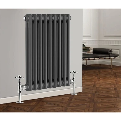 General description Our Traditional Radiator offers a heating solution with a classic design at a competitive price. Specially tested, it helps you maximize your available space while easily fitting into your central heating system like a standard household radiator, ensuring a straightforward installation. Technical specifications Material: 1.5mm Cast Iron style SPCC Steel Size: 600 x 425 mm Panel: Double Column Finish: Anthracite Water inlet/outlet size: 1/2" High heat output Tested to BS EN442 standards Other information All radiators come with a 15-year guarantee Brackets and fixings included (valves not included)