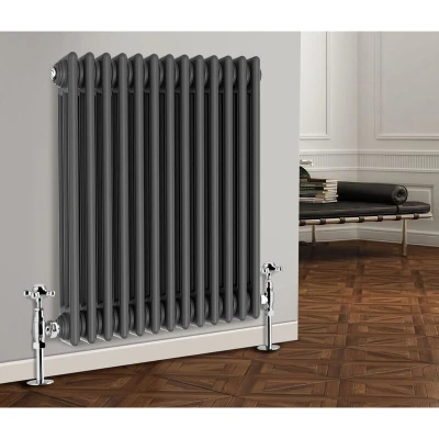 General description Our NRG Traditional Cast Iron Style Radiator offers a heating solution that combines a classic design with modern efficiency at a competitive price. Specially tested, this radiator helps you maximize your available space while easily integrating into your central heating system without complicated installation. Technical specifications Material: 1.5mm Premium Mild Steel Size: 600 x 605 mm Panel: Triple Column Water inlet/outlet size: 1/2" Finish: Durable Anthracite High heat output Tested to BS EN442 standards Other information Brackets and fixings included (valves not included) 15-year guarantee