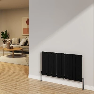 NRG 600x1020mm Black Radiator Horizontal Flat Panel Bathroom Designer Single Rad Central Heating