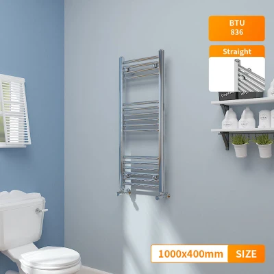 General description Contemporary style, fits any kind of interior design. The modern manufactured finish process gives the radiator a smooth and elegant appearance. Technical specifications Material: low carbon steel Model: Straight in Chrome Size: 1000x400mm Inlets and outlets: 1/2" Tested to BS & EN442 Certification: Powder coated finish to exceed 200 hours of neutral acid salt spray testing Complies with ISO9001:2008 regulations Complies with UKCA regulations Compatibility and accessories Compatible for use on all UK heating systems (tank fed or combi systems) Valves are not included Other information Tested under high hydraulic pressure to ensure impermeability All radiators come with a manufacturer-leading 15-year warranty (applicable exclusively for water leakage claims within the warranty period)