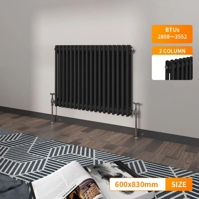 General description Our NRG Traditional Vintage Cast Iron Style Radiator offers a heating solution that combines a classic design with modern functionality at a competitive price. Specially tested, this radiator helps you maximize your available space while easily integrating into your central heating system like a standard household radiator, ensuring a straightforward installation process. Technical specifications Material: 1.5mm Cast Iron style SPCC Steel Size: 600 x 830 mm Panel: Double Column Water inlet/outlet size: 1/2" Finish: Black High heat output Tested to BS EN442 standards Other information Brackets and fixings included (valves not included) 15-year guarantee