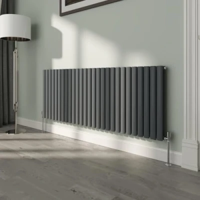 NRG 600x1593mm Oval Column Designer Radiator Double Panel Anthracite Bathroom Central Heating