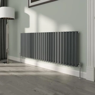 General description Our Horizontal 600x1593 Oval Column Single Panel Designer Radiator offers a contemporary heating solution at a competitive price. With its elegant design, it fits seamlessly into any interior style while providing efficient heating. Technical specifications Material: 1.5mm premium mild steel Model: Single Oval in Anthracite Size: 600x1593mm (HxW) Bars: 27 Water inlet/outlet size: 1/2" Tested to BS & EN446 Accreditation: Complies with ISO9001:2012 regulations Triple layered finish exceeds 204 hours of neutral acid salt spray testing Compatibility and accessories Compatible with all UK heating systems (tank fed or combi systems) No valves included Installation Easily fits into your central heating system like a normal household radiator No complicated installation required Usage Can be used on all UK heating systems Other information All radiators come with a 15-year guarantee Tested under high hydraulic pressure to ensure impermeability