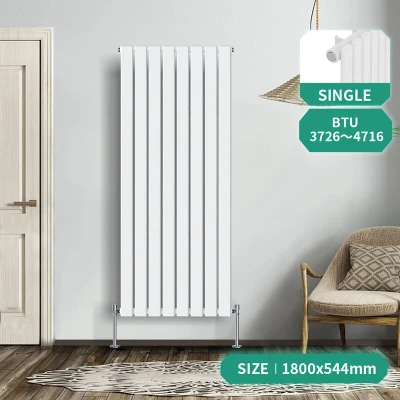 General description Our NRG Designer Radiator offers a contemporary heating solution at a competitive price. Designed to seamlessly integrate into your central heating system, it functions like a standard household radiator, ensuring a straightforward installation process. The radiator features a water inlet/outlet size of 1/2" and comes with a 15-year guarantee. Technical specifications Material: 1.5mm premium mild steel Model: Single Flat Panel in Gloss White Size: 1800x544mm (H x W) Bars: 8 Compatibility and accessories Compatible with all UK heating systems (tank fed or combi systems) No valves included Other information Tested under high hydraulic pressure to ensure impermeability Triple layered finish exceeding 200 hours of neutral acid salt spray testing Tested to BS & EN442 Complies with ISO9001:2008 regulations
