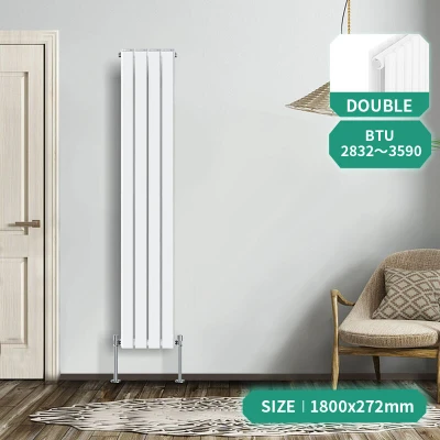 General description Our NRG Designer Radiator offers a contemporary heating solution at a competitive price. Designed to fit seamlessly into your central heating system like a standard household radiator, it ensures a straightforward installation process. The radiator features a water inlet/outlet size of 1/2" and comes with a 15-year guarantee. Technical specifications Material: 1.5mm premium mild steel Model: Double Flat Panel in Gloss White Size: 1800x272mm (H x W) Bars: 8 Tested under high hydraulic pressure for impermeability Compatibility and accessories Compatible with all UK heating systems (tank fed or combi systems) No valves included Other information Triple layered finish exceeds 200 hours of neutral acid salt spray testing Tested to BS & EN442 Complies with ISO9001:2008 regulations