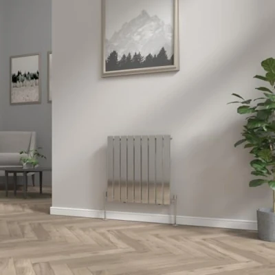 NRG 600x612mm Horizontal Flat Panel Designer Bathroom Central Heating Radiator Chrome Single Column Perfect for Bathroom, Bedroom, Kitchen, Hallway, Living Room