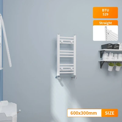 General description Contemporary style, fit for any kind of interior design. The modern manufactured finish process gives the radiator a smooth and elegant appearance. Technical specifications Material: Low carbon steel Model: Straight in White Size: 600x300mm Inlets and outlets: 1/2" Certification: Powder coated finish exceeding 200 hours of neutral acid salt spray testing Tested to BS & EN442 Complies with ISO9001:2008 regulations Complies with UKCA regulations Compatibility and accessories Compatible for use on all UK heating systems (tank fed or combi systems) Valves are not included Other information Tested under high hydraulic pressure to ensure impermeability Manufacturer-leading 15-year warranty applicable exclusively for water leakage claims within the warranty period