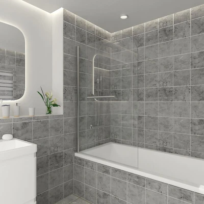 General description Curved Bath Screen with Towel Rail designed for modern bathrooms, featuring a reversible installation option for left or right-hand entry. Technical specifications Product Size: 1400mm (H) x 800mm (W) Material: 6mm toughened safety glass with easy clean coating Frame: Chrome aluminum side frame Pivot system: Lifting function allowing 180-degree swing Adjustable distance: 15mm for out of true wall Other information Stainless steel handle Anti-rust and long-lasting High-Quality CE Marked Product Please note: Without shower tray