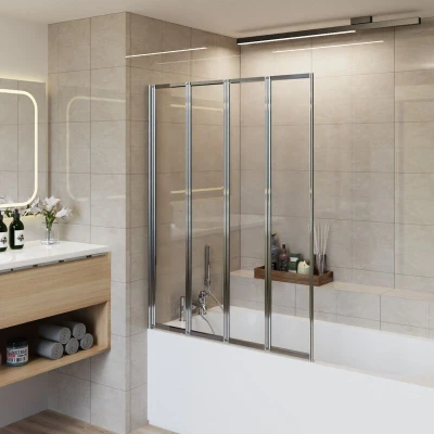NRG 850x1400mm 4 Panel Folding Bath Shower Screen Clear Glass Bathtub Door Pivot Swing