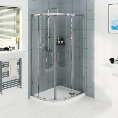 General description Quick Assemble shower enclosure featuring an Offset Quadrant design with double sliding doors, ideal for maximizing space in your bathroom. Technical specifications Product Size: 900 x 760 x 1900 mm Door Entry Width: 470 mm Glass Thickness: 6 mm Adjustable Distance for Out of True Wall: 20 mm Installation Quick and easy installation process. Can be fitted for either left or right-hand entry. Usage Designed to reduce water splashes with extra tall 1900 mm glass panels. Features a water-tight magnetic closing mechanism for enhanced usability. Other information Chrome aluminum curved profile for a modern look. Galvanized top and bottom double wheels for smooth sliding, long-lasting performance, and anti-rust properties. High-Quality CE Marked Product that has passed multiple waterproof tests, ensuring waterproof guarantee.