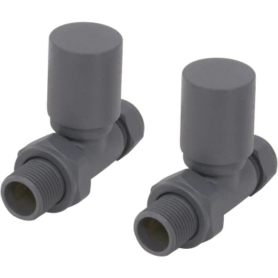 NRG Anthracite Straight Manual Radiator Valve Round Head Towel Rail Designer Valves One Pair