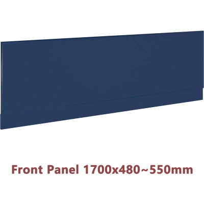 General description Manufactured from strong MDF wood, this stylish matt navy blue front bath panel features a moisture-resistant finish to help protect against dampness. Modern and durable, it is designed to provide both premium quality and functionality. Technical specifications Material: MDF wood Finish: Matt Navy Blue Thickness: 18mm Adjustable height: 480mm to 550mm Dimensions: 1700mm (length) Note: L-Shape panel is not adjustable Installation It is recommended to ask a qualified plumber for installation. Other information Optional: Choice of MDF front and side bath panels available. Includes an extra 10cm sheet for height adjustment. Much stronger than competitors' plastic panels.