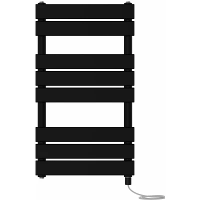 NRG Bathroom Flat Panel Heated Towel Rail Radiator with Manual Electric Heating Element Modern Central Warmer Wall Mounted Ladder Rad 800x450mm Black