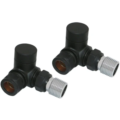 NRG Black Towel Rail Corner lockshield Radiator Valve One Pair